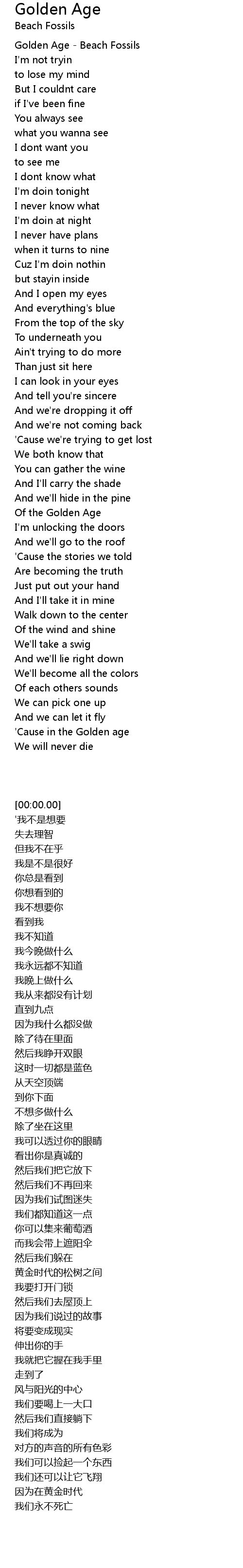 Beach Fossils - The Golden Age Lyrics. And thats not all. And you can take my hand.