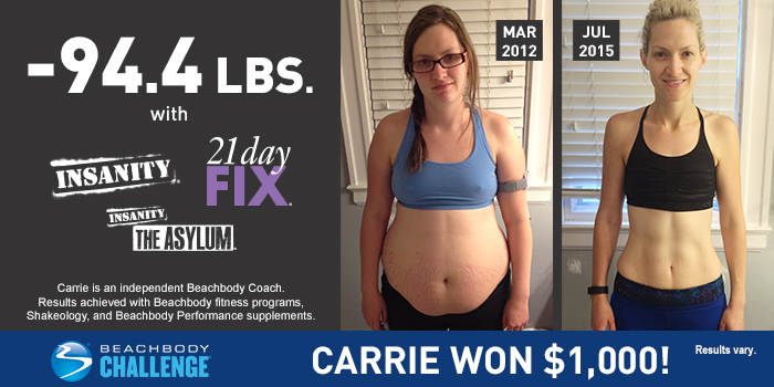 Beachbody Results Carrie Lost 94 4 Pounds And Won 1 000 The Beachbody Blog